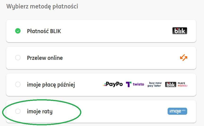 Wypełnij formularz zamówienia i wybierz opcję płatności imoje raty