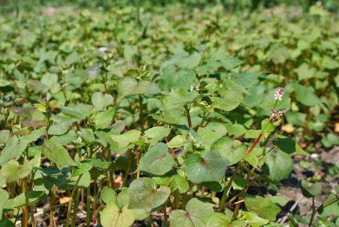 Poletko obsiałem 22 czerwca i grabiami przysypałem nasiona, żeby ptaki nie zjadły zbyt wiele. Czerwiec był wyjątkowo aktywny i po prostu nie miałem czasu, by wcześniej się uwinąć. Gryka szybko dojrzewa, ale w przyszłym roku postaram się zasiać w pierwszych dniach czerwca, gdy minie niebezpieczeństwo przymrozków.