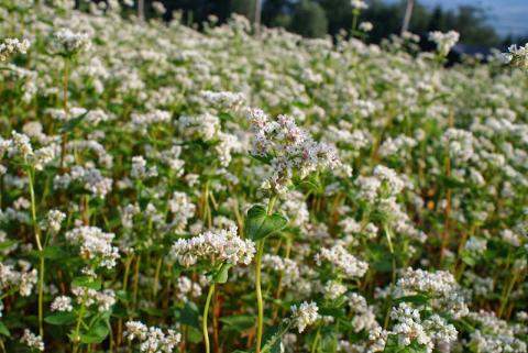 Po dwóch miesiącach pole pokryło się pięknymi białymi kwiatkami. W słoneczne dni pszczoły miały używanie – aż roiło się od owadów.