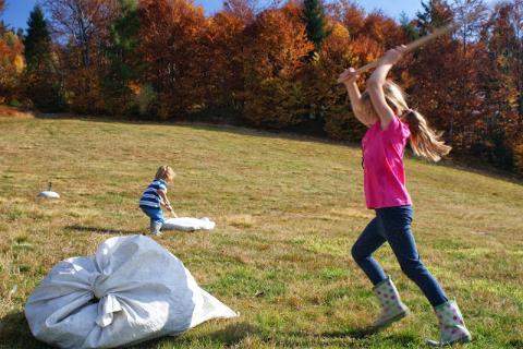 Po dwóch tygodniach suszenia nadszedł czas młócenia. Wysuszone wiązki zapakowałem do worków, dzieciaki dostały kije i zielone światło na okładanie gryki do woli. Świetne zastosowanie dla nadmiaru dziecięcej energii J.