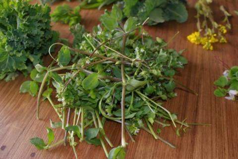 Komentarz po 10 latach: nic się nie zmieniło, nadal organizm po zimie nie może się doczekać na świeżą pasterską. Większa różnorodność chwastów, dodajemy też młode pąki i pędy z drzew - lipy, sosny, modrzewia. Częstym dodatkiem jest jajko sadzone prosto z kurnika.