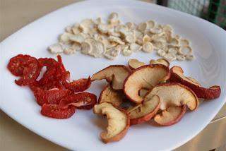 Suszyć można prawie wszystkie rośliny. Świetnie smakują suszone wiśnie. Suszony agrest jest pyszny jako dodatek do herbaty, choć sam też jest smaczną przekąską. Cienko pokrojone plasterki korzenia pietruszki zrobione przez moją mamę schodziły przez święta w mig i podobnie jak chipsy ziemniaczane wymagają zjedzenia całej paczki do końca J. Świetnie smakują też suszone maliny. Z pewnością przed jesienią pochwalę się ciekawymi, nietypowymi suszonkami.