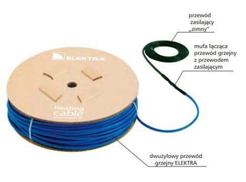 Stół grzewczy ma wymiary 120 x 60 cm i do takiej powierzchni potrzeba ok. 7 metrów przewodu grzejnego. Szukałem kabla o mocy 10 W na metr bieżący, gdyż takie właśnie zaleca się do podgrzewanych rozsadników. Produkt, który dokładnie mi odpowiadał, to gotowy siedmiometrowy odcinek kabla firmy Elektra (VCD 10/70). Kabel ten kosztował 142 zł.