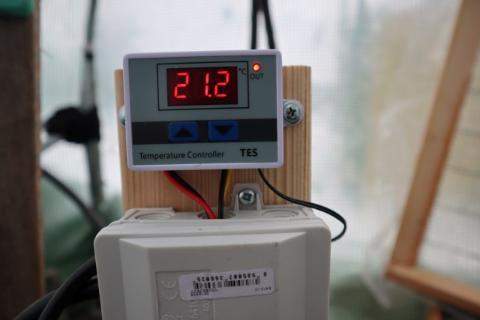 Pierwsze próby robiłem na regulatorze do ogrzewania podłogowego, który został mi po budowie domu. Regulator działał sprawnie, ale był delikatny i nieprzystosowany do roboczych warunków foliaka.