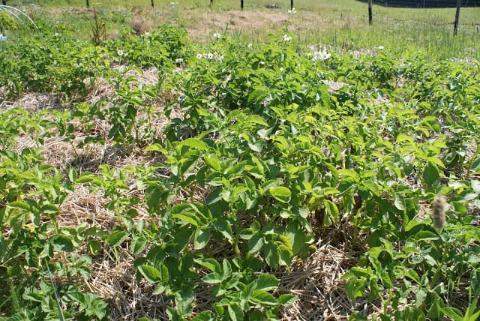 Ziemniaki uprawiane pod słomą okazały się sukcesem rolniczym tego roku. Ze wszystkich stosowanych przeze mnie metod i technik ta jest prawdopodobnie najkorzystniejsza energetycznie. 50 kg ziemniaków sadzeniaków posadziłem w mniej więcej półtorej godziny. Nie wiem jeszcze jaki jest plon z tej uprawy, więc na ostateczną ocenę muszę poczekać, ale wstępnie wygląda, że będzie sporo cennego jedzenia na jesień i część zimy. Wkładając dość niewiele kalorii dostałem spory zapas energii, witamin, smaku i przyjemności przebywania w ogrodzie.